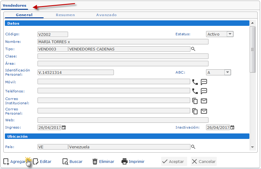 Te mostramos cómo agregar nuevos registros de Vendedores en el Módulo de Ventas.