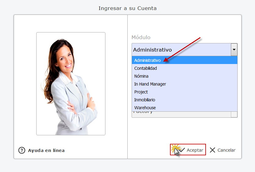 Administrativo y presionamos el botón