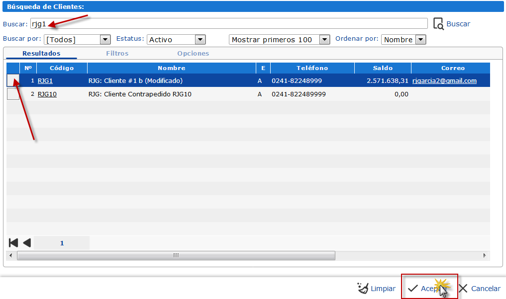 En la ficha Parámetros, podemos escribir los códigos correspondientes cada campo o también presionar el ícono de lupa ubicado a la derecha de estos.