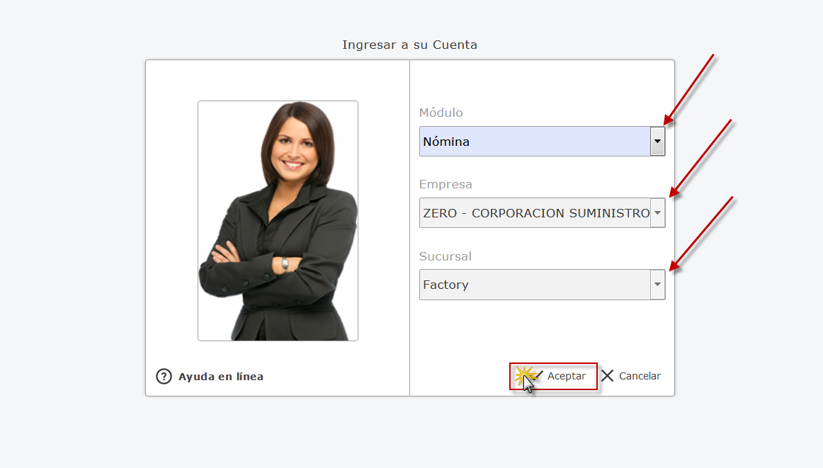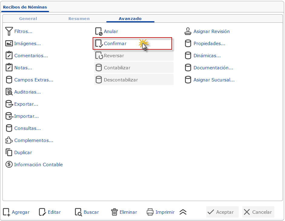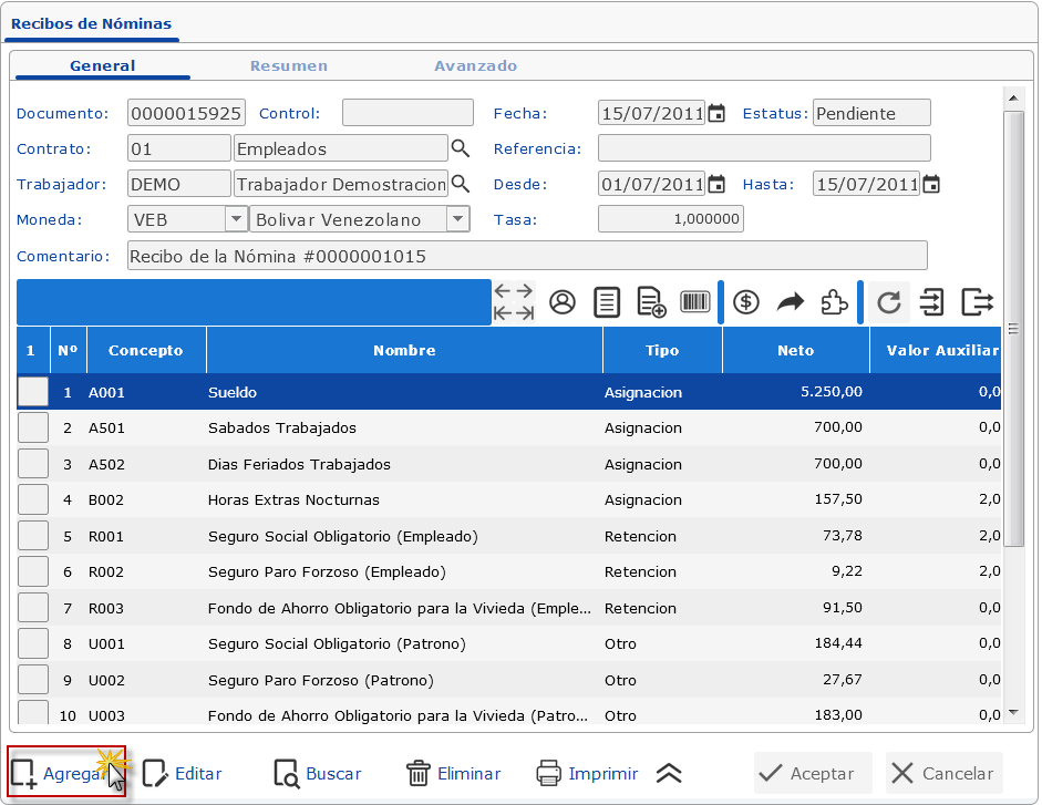 Nómina y presionamos el botón