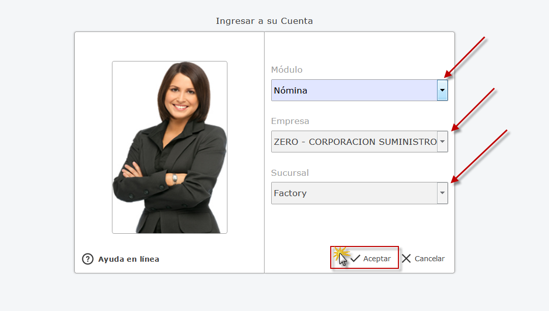 Nómina y presionamos el botón