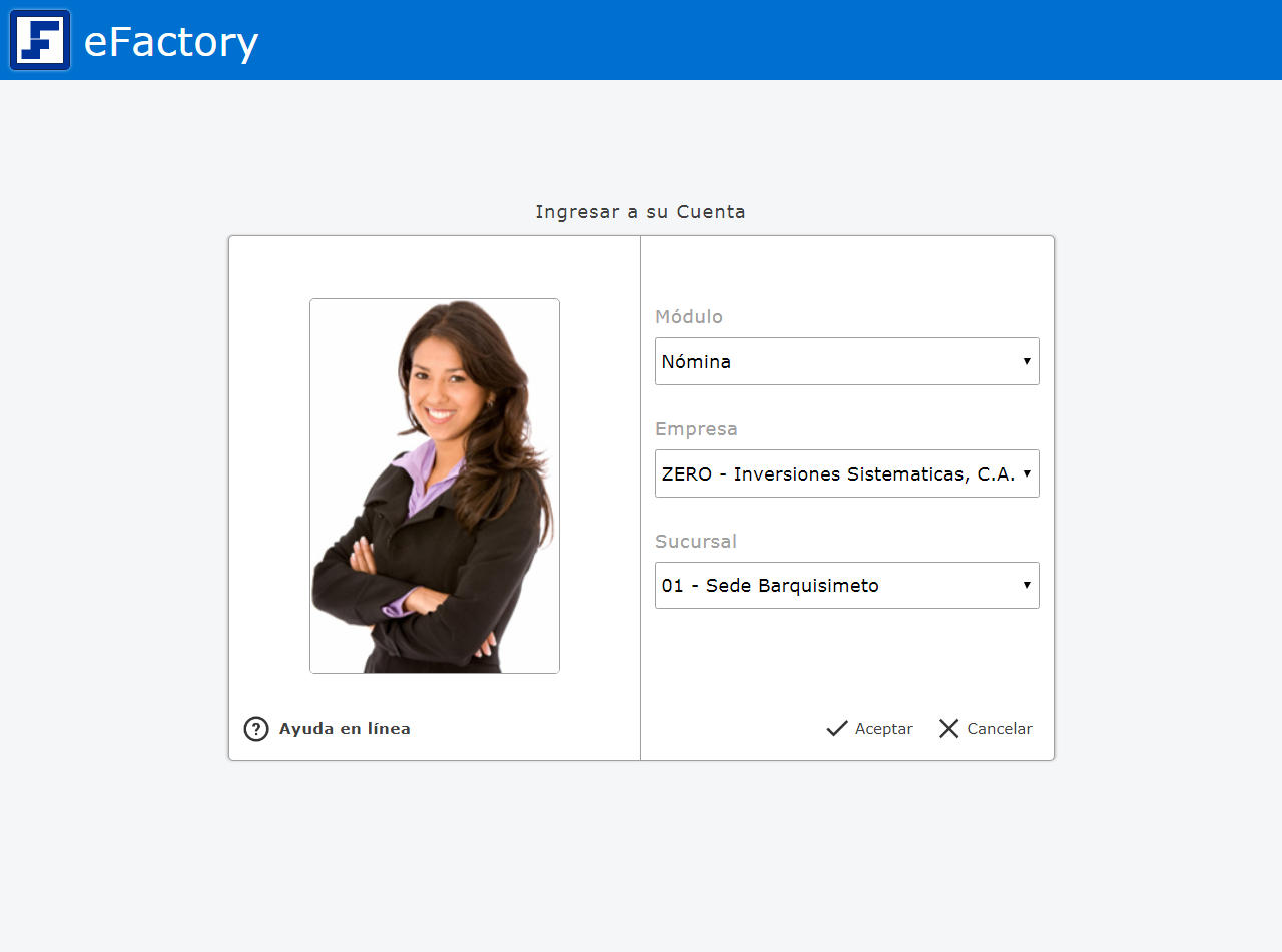 a. Al iniciar en eFactory con nuestro Usuario y Contraseña, Seleccionaremos la Aplicación Nómina,