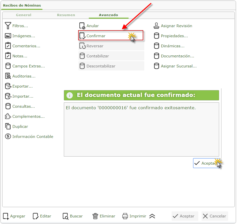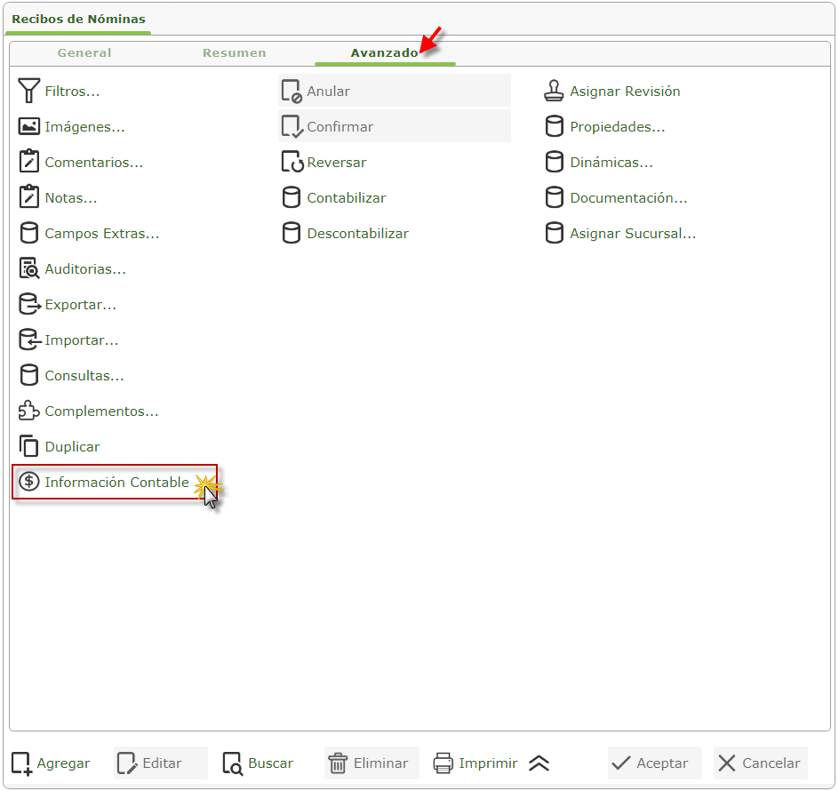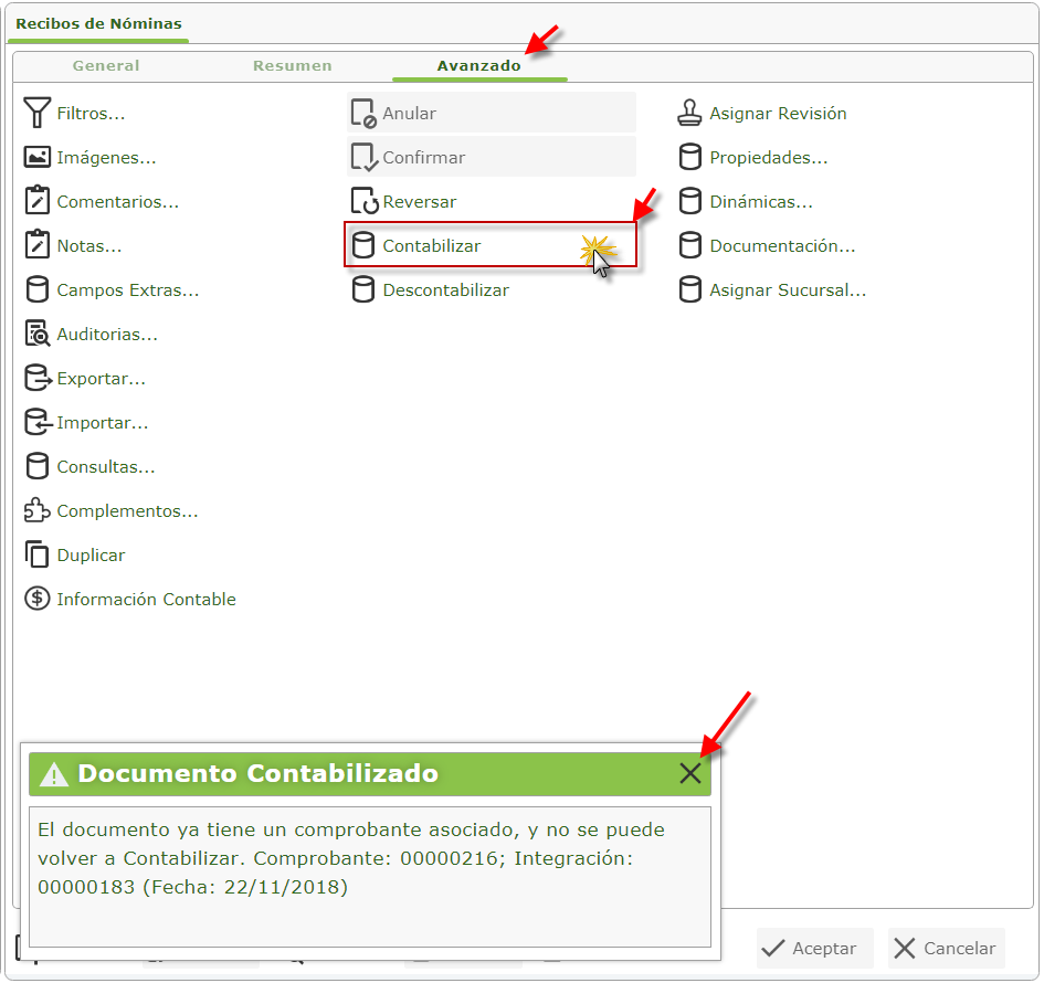 b. Luego de contabilizar en la misma ventana de Avanzado seleccionaremos el botón