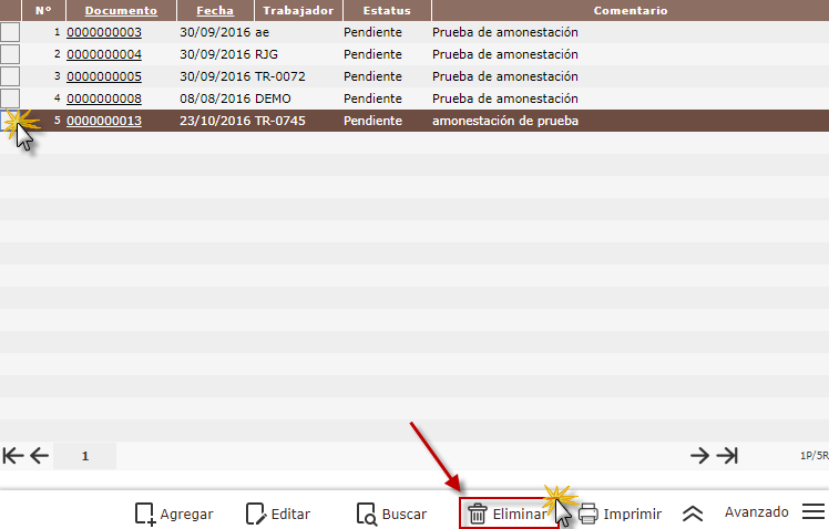 Para eliminar una amonestación tenemos que ubicar la amonestación a eliminar en eFactory Nómina y para eso la amonestación tiene que esta creada.
