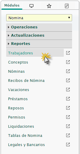 b. Luego de haber ingresado a eFactory nos ubicamos en el módulo Nómina, desplegamos el componente Reportes y activamos el Maestro Trabajadores