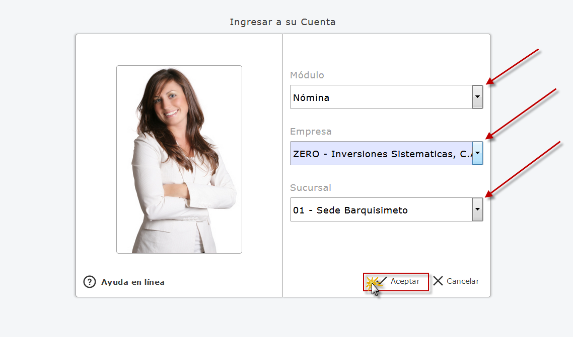 Nómina y presionamos el botón
