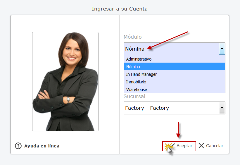 a. Al iniciar eFactory, Seleccionamos la Aplicación