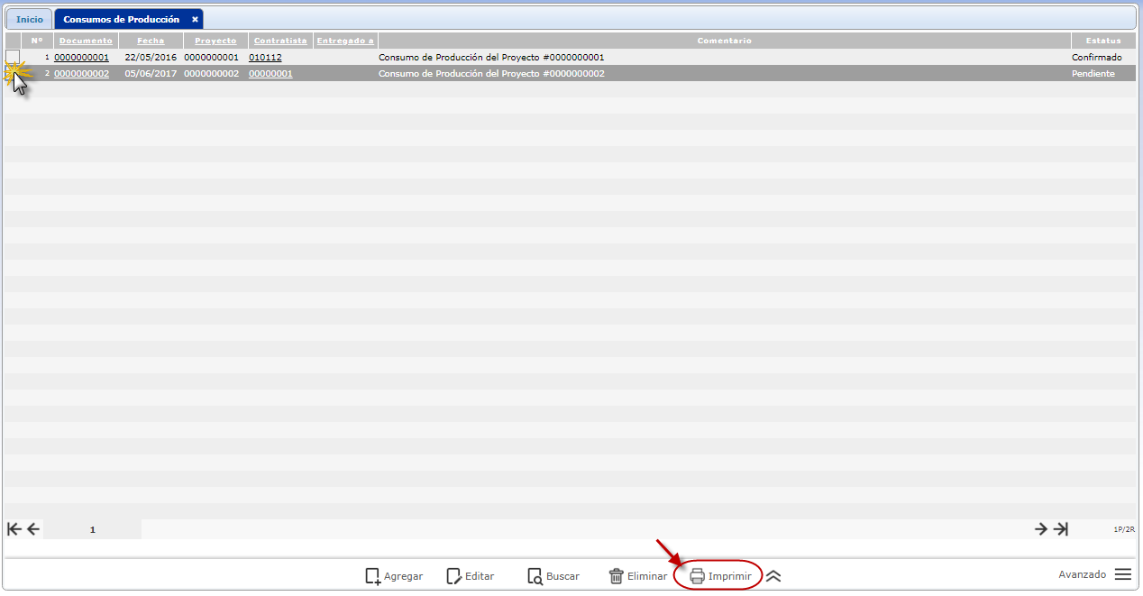 del Consumos de Producción que deseemos imprimir.