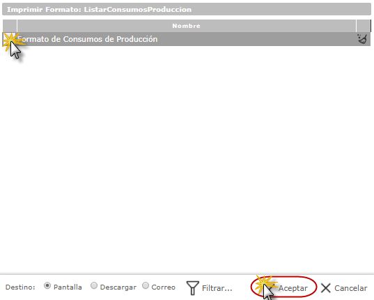 donde dice Formato de Consumos de Producción y seleccionaremos el botón