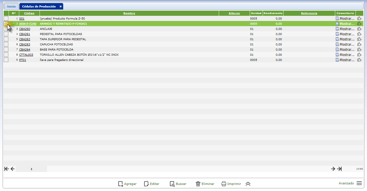 de la Cédula de Producción y seleccionaremos el botón