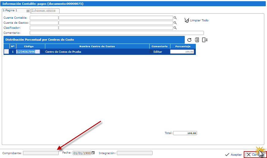 Luego, para guardar el Documento de Pago, presionamos el botón