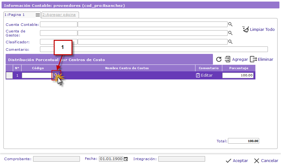 del campo Centros de Costos para buscar el Centro de Costos que queremos asignar al Proveedor.