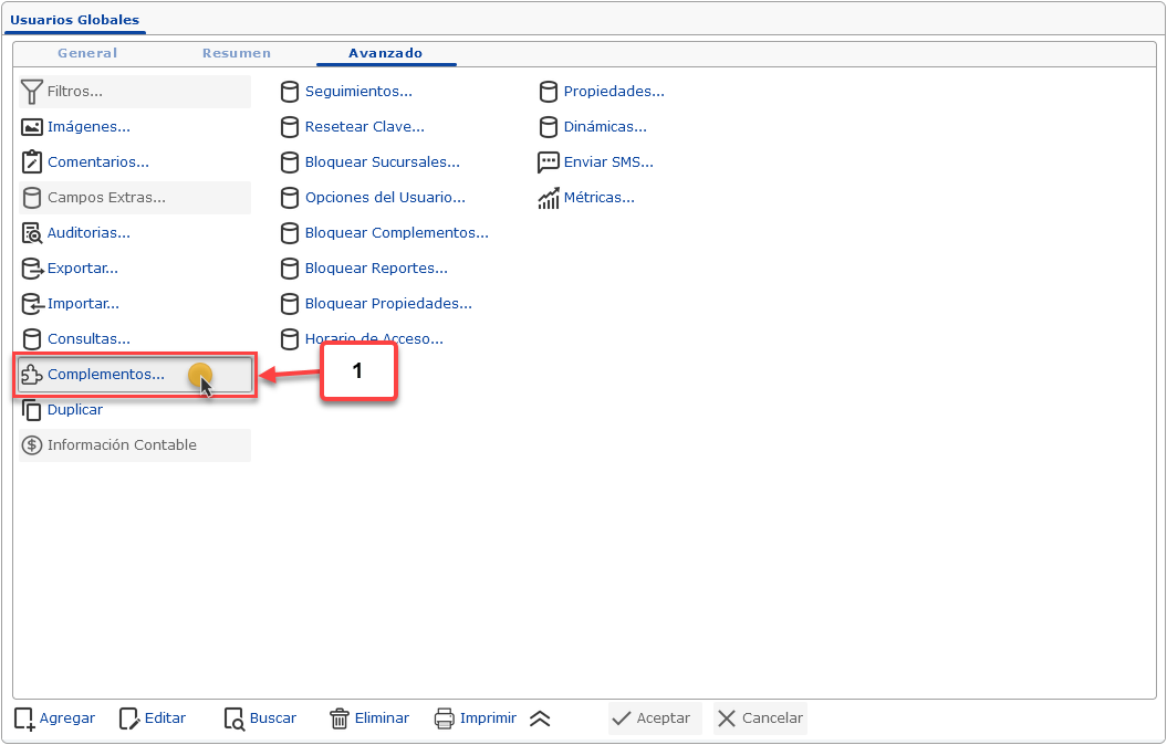 a. Luego de haber seleccionado la opción de Usuarios Globales se muestra la pantalla donde debemos hacer clic en la pestaña Avanzado.