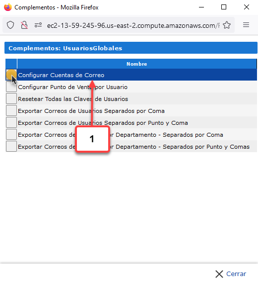 c. Luego debemos seleccionar la opción Configurar Cuentas de Correo en la lista de complementos.