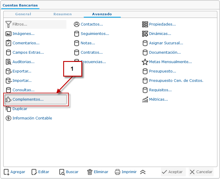 a. Luego de haber seleccionado la opción de Cuentas Bancarias se muestra la pantalla donde haremos clic en la pestaña Avanzado.