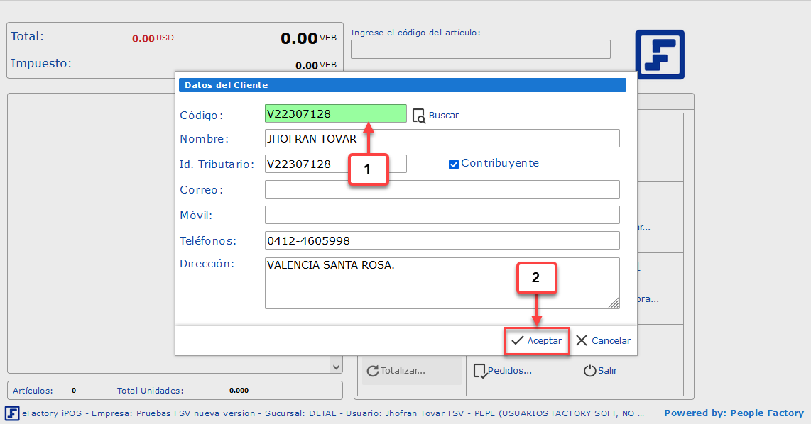 a. Primero debemos indicar el cliente al que se facturará y Presionar Enter o hacer clic en el botón