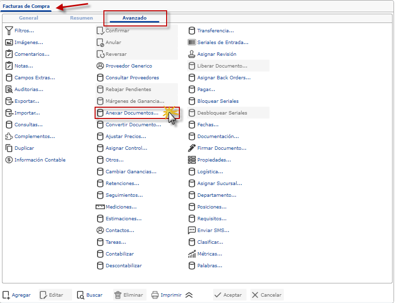 Observa el procedimiento para cargar consumos parciales o totales sobre Renglones pendientes de Órdenes de Compra, usando la herramienta Anexar Documentos, para generar Facturas de Compra.
