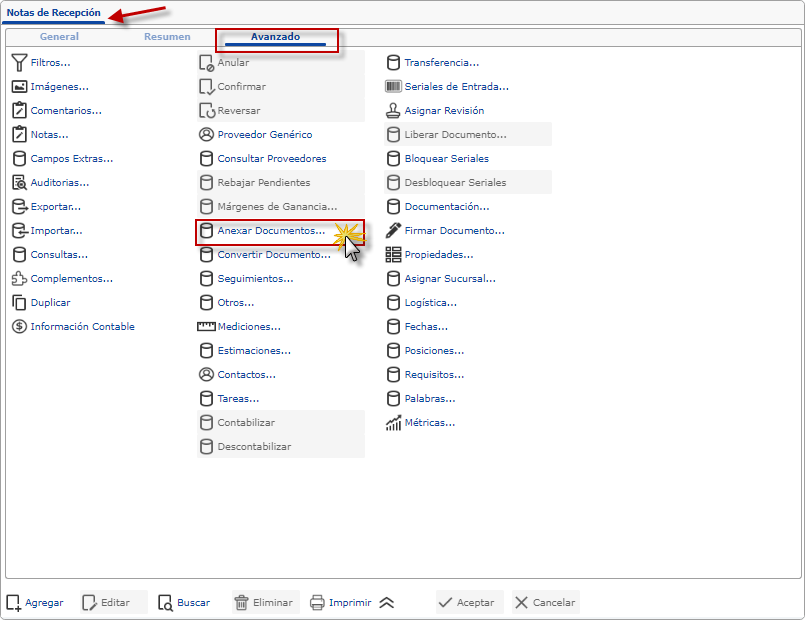 - Este procedimiento crea un nuevo Documento de Nota de Recepción.