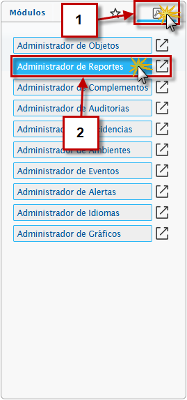 a. Luego de haber seleccionado la opción de Administrador de Reportes se muestra la pantalla donde debemos presionar el botón