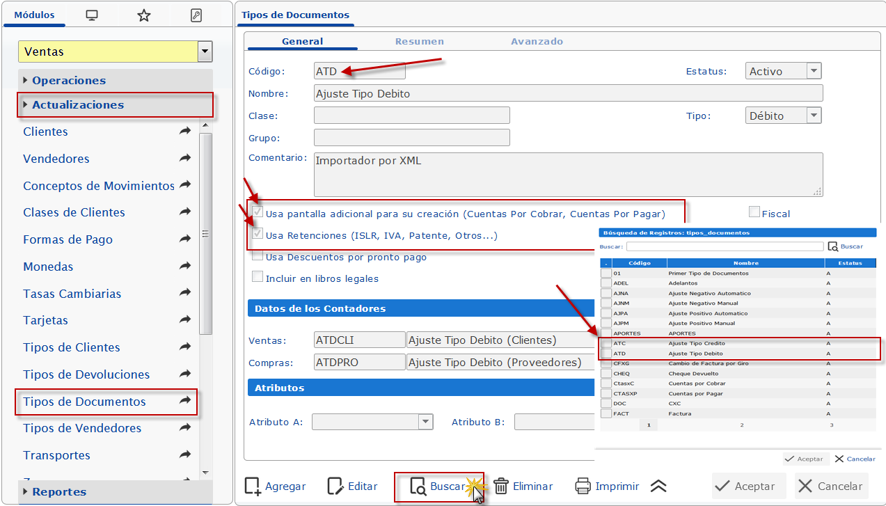 y procedemos a buscar el Tipo de Documento "ATD" y precionaremos el botón