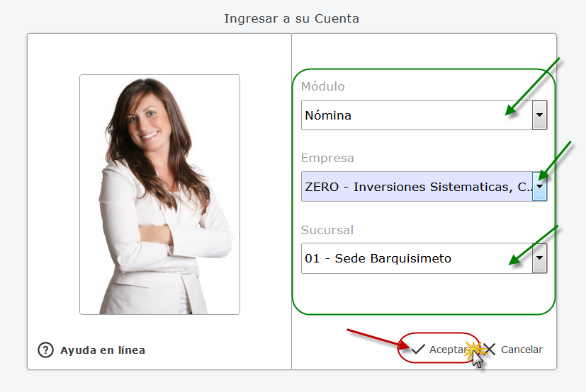 Nómina, Empresa y Sucursal de la Empresa y presionamos el botón