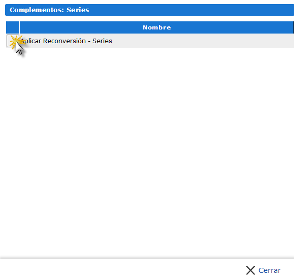 f. Luego se nos muestra una ventana donde seleccionaremos Aplicar Reconversión Series.