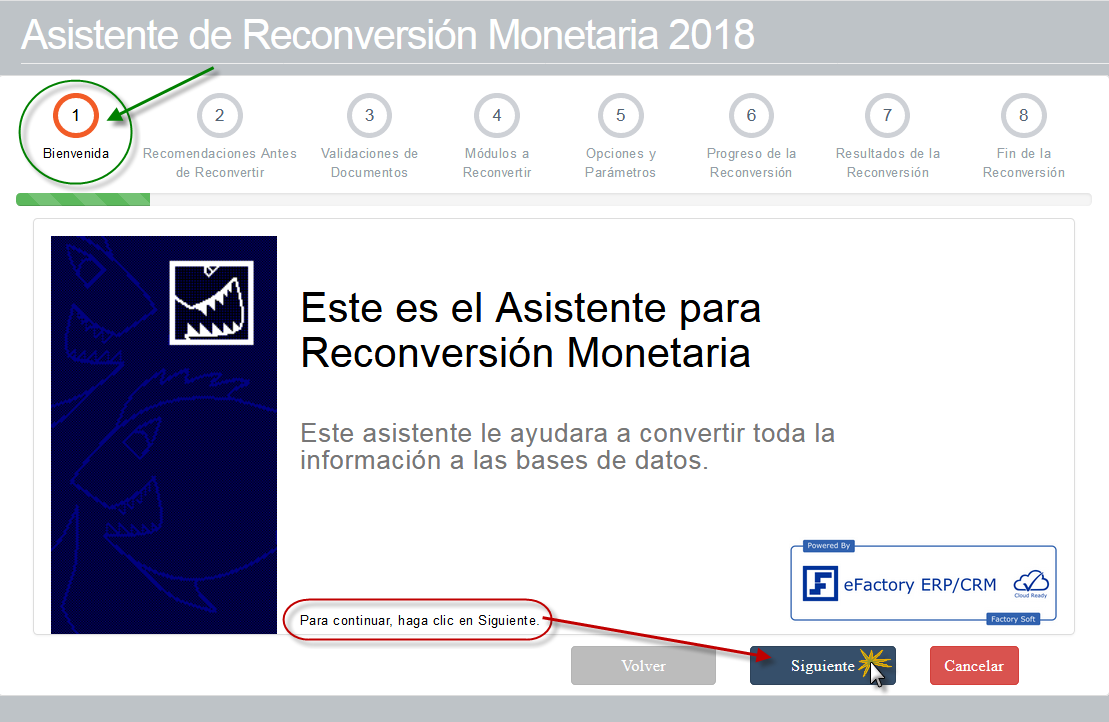 Asistente de Reconversión Monetaria 2018, tenemos 8 Instrucciones que debemos seguir para