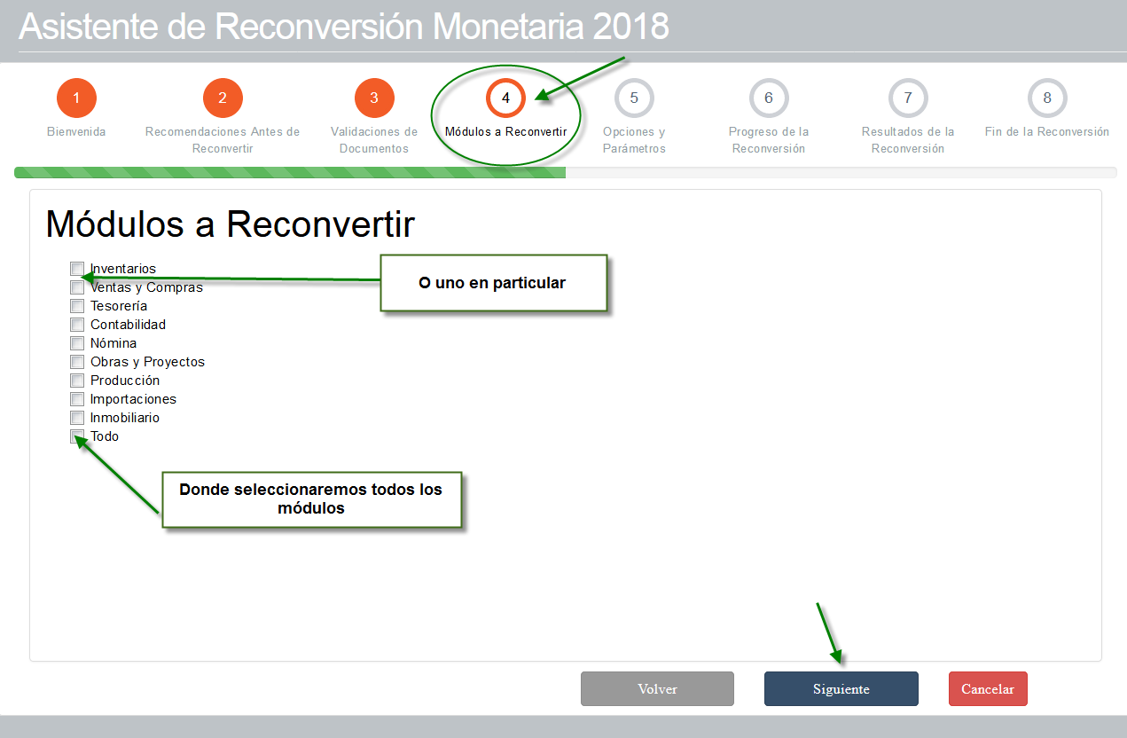 4. Módulos a Reconvertir: Aquí vamos a seleccionar el módulo que deseamos reconvertir y presionaremos