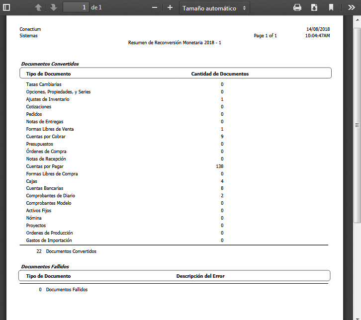 a. En la ventana de Resultados de la Reconversión, muestra una tabla de los resultados obtenidos