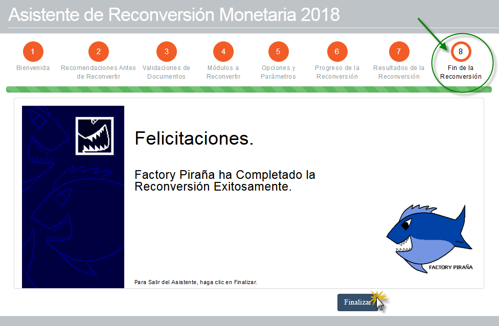 8. Fin de la Reconversión: Muestra un aviso donde dice que se ha completado exitosamente la operación