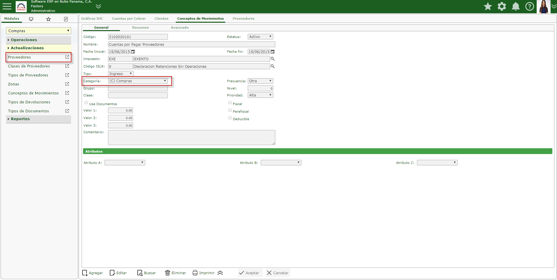 Nota: Para que se muestre el Reporte D-151 Declaración Anual Resumen de Clientes, Proveedores y Gastos Específicos (CRI) tuvimos q realizar la configuración explicada en la parte inicial de la documentación.