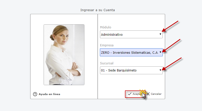 Administrativo y presionamos el botón