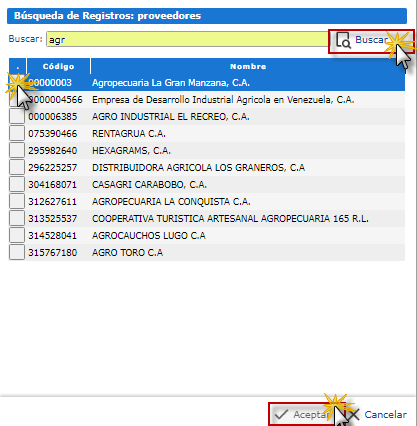 En la ficha Parámetros, podemos escribir los códigos correspondientes cada campo o también presionar el ícono de lupa ubicado a la derecha de estos.