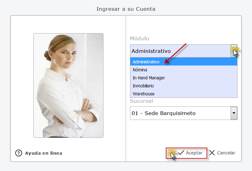 Administrativo, Empresa y Sucursal de la Empresa y presionamos el botón