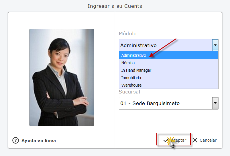 a. Al iniciar eFactory, Seleccionamos la Aplicación
