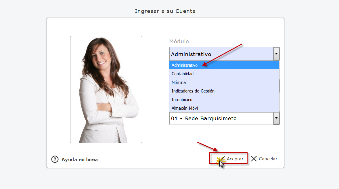 a. Al iniciar eFactory, Seleccionamos la Aplicación