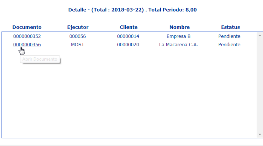 Al hacer click sobre dicho punto, se muestra una ventana con los casos que totalizan el día señalado con el puntero.