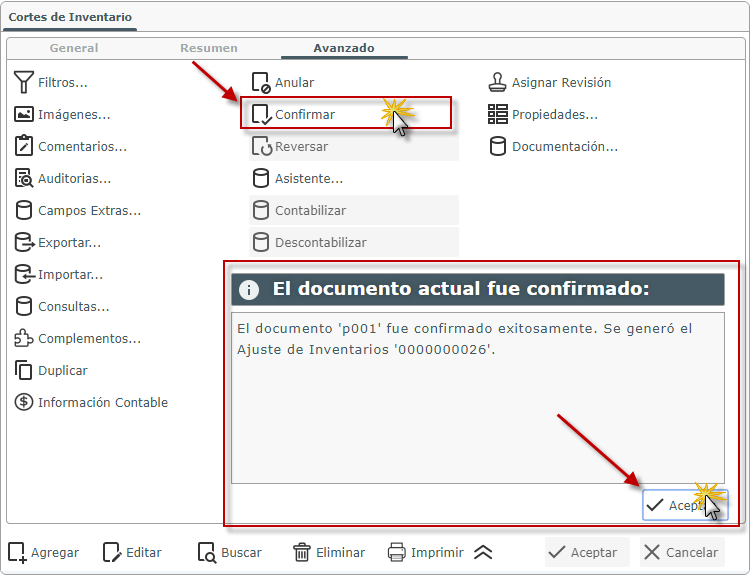 , con lo cual ya hemos creado el Cortes de Inventario.