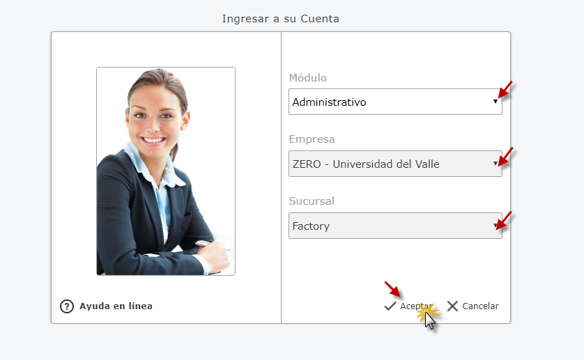 Administrativo, Empresa y Sucursal de la Empresa y presionamos el botón