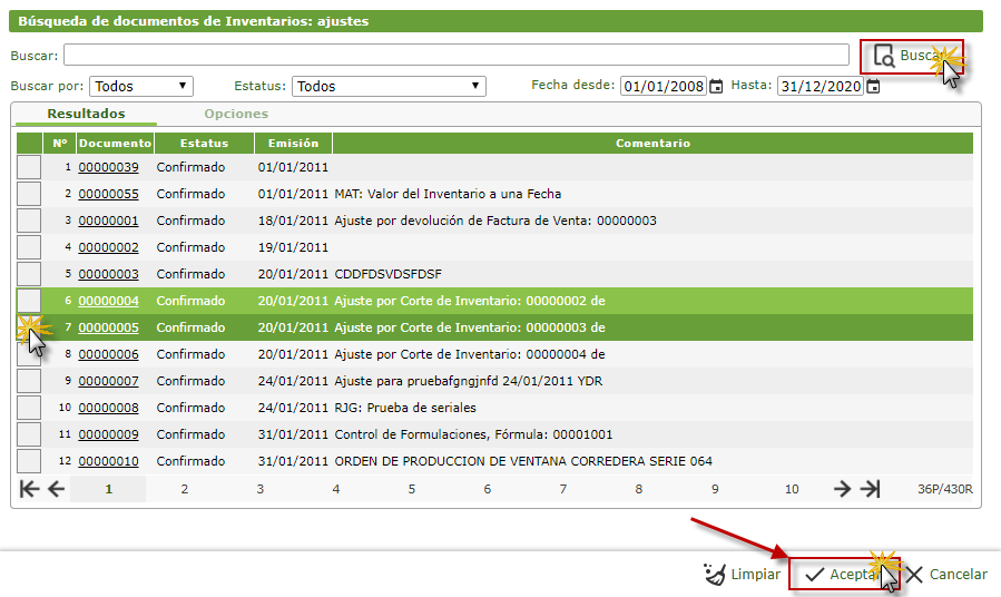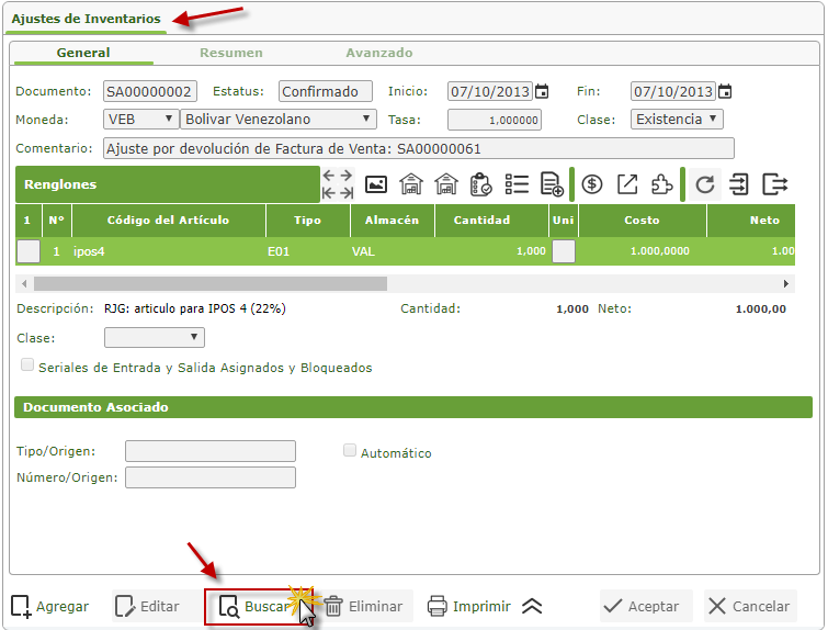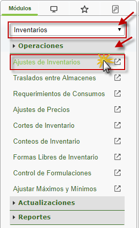 a. Al seleccionar el componete Ajuste de Inventarios