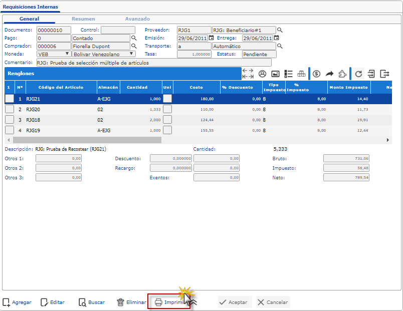 Te explicamos cómo imprimir un Formato para visualizar detalles de Requisiciones Internas de Compras.