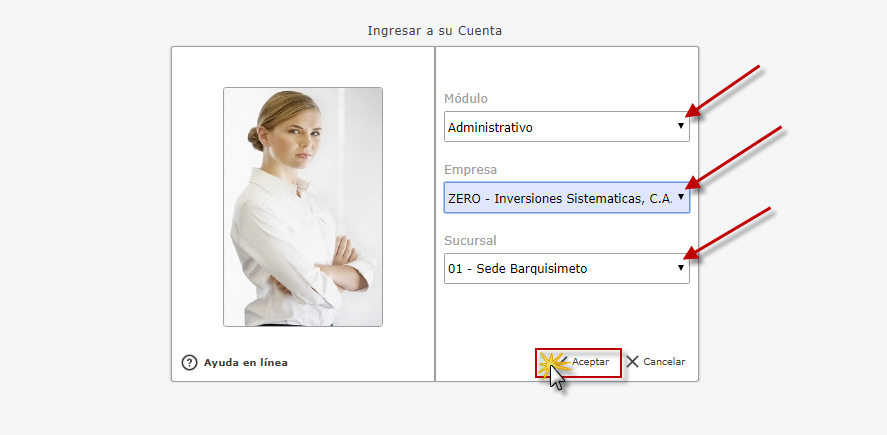 a. Al iniciar eFactory, Seleccionamos la Aplicación