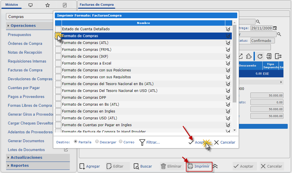 y selecionaremos Fcaturas de Compra, luego precionaremos el botón