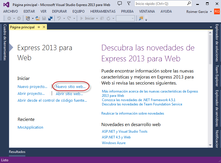 programación web con asp.net + webforms. En este artículo utilizaremos Microsoft Visual Studio Express 2013 para el Web, disponible para ser descargado de forma gratuita en el website de Microsoft.