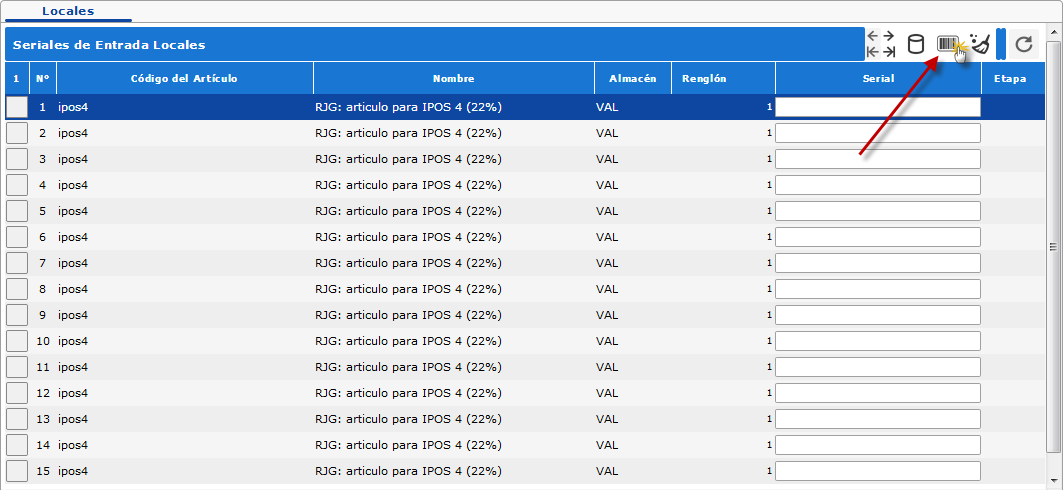 y se nos generaran todos los seriales para el rango de artículos que establecimos.