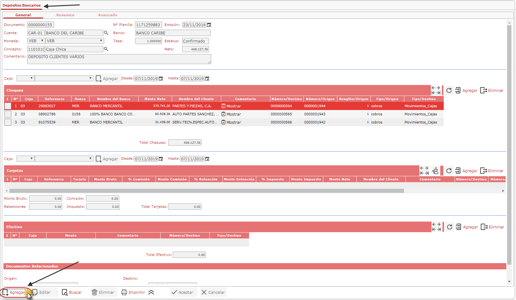 c. Después de q se agrego el nuevo renglón en tarjetas presionaremos el botón