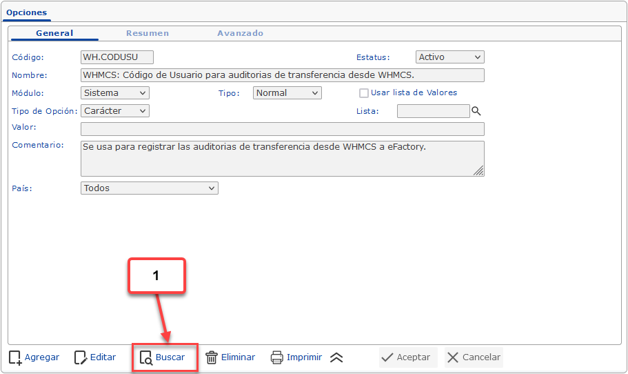 Las opciones globales son aquellas creadas desde la pantalla de Opciones, en el módulo de Sistemas.