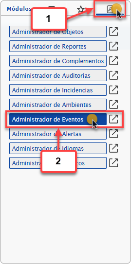 a. Al ingresar en el sistema debemos hacer clic en la pestaña de Herramientas y luego seleccionaremos la opción de Administrador de Eventos.