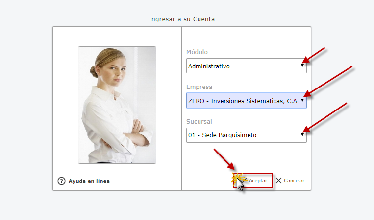 a. Al iniciar eFactory, Seleccionamos la Aplicación Administrativo y presionamos el botón