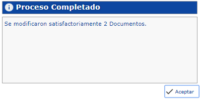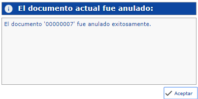 Luego de Eliminar el Documento, veríamos un cuadro confirmando la acción